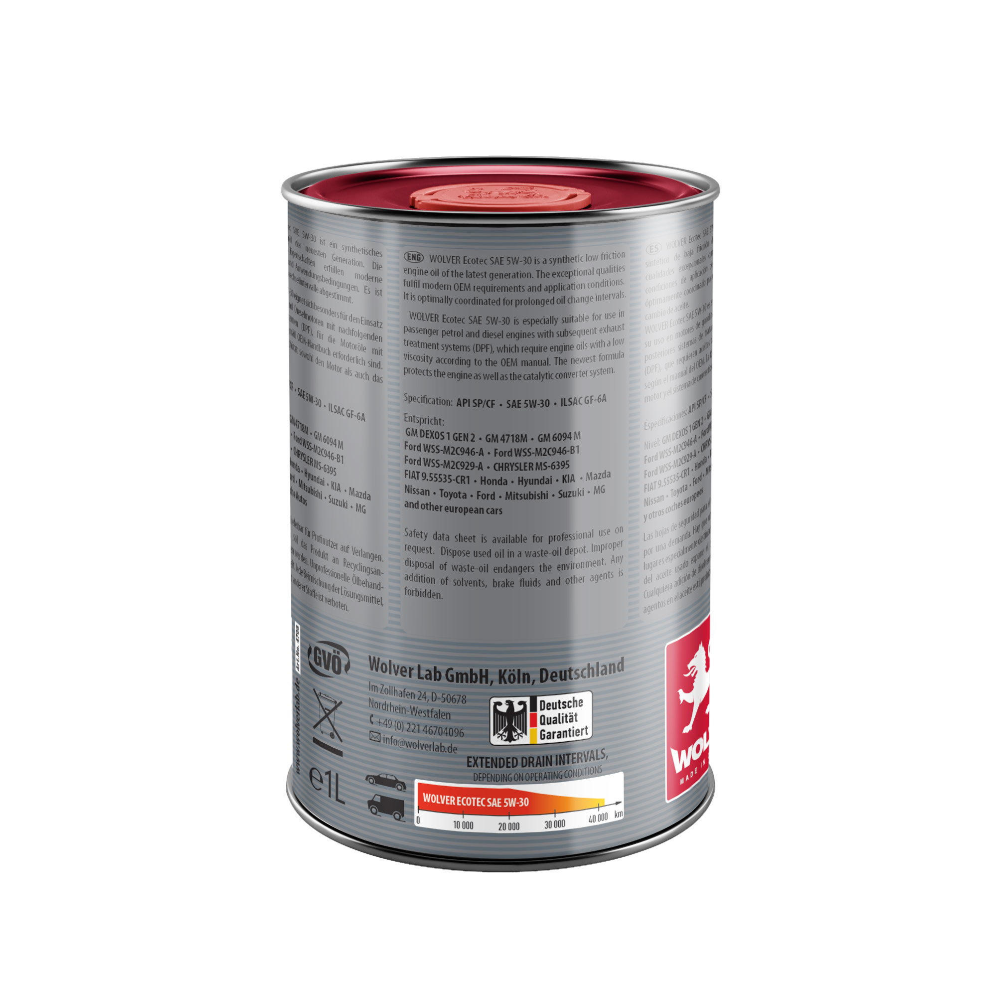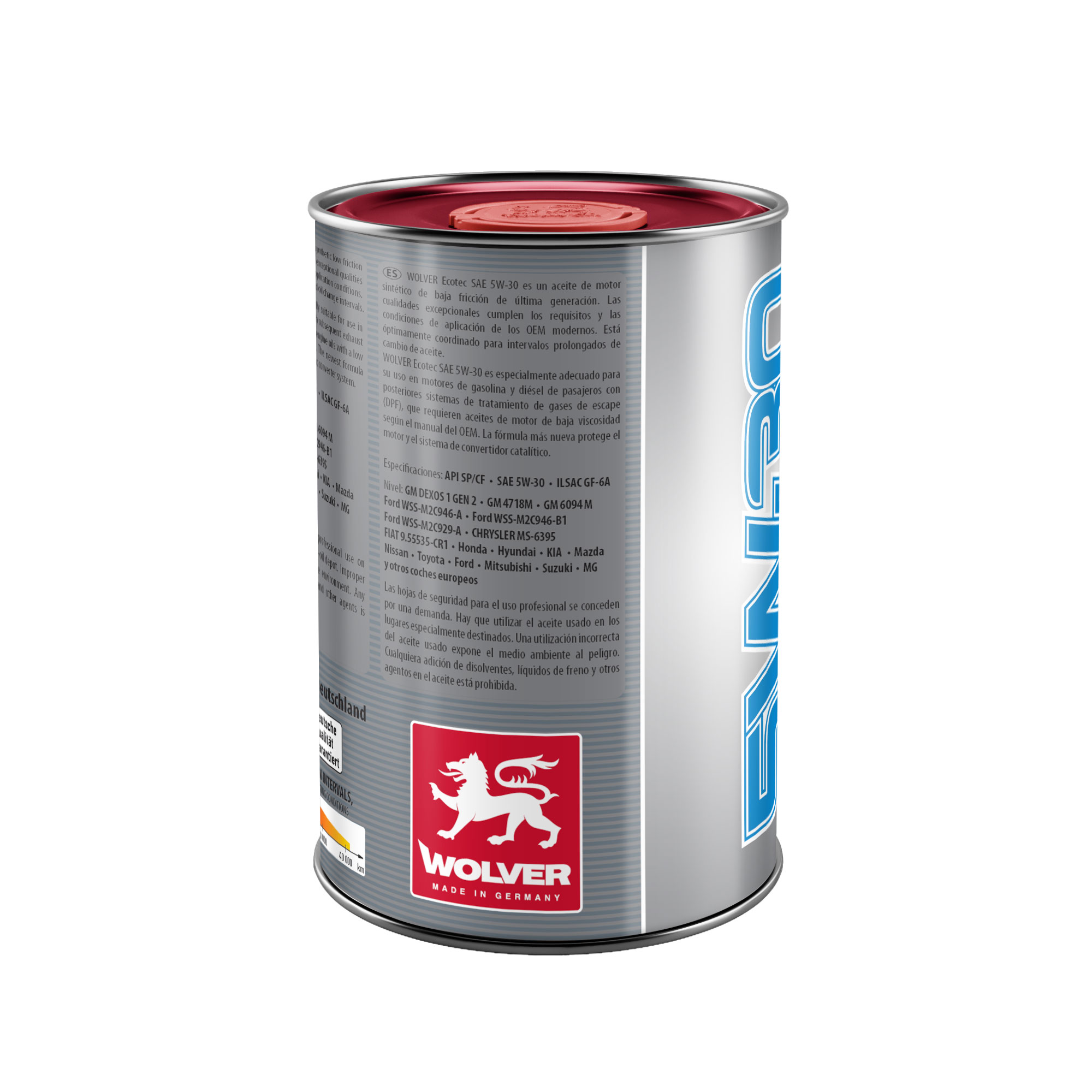 Wolver Ecotec SAE 5W-30 es un aceite de motor sintético de baja fricción de última generación. Sus cualidades excepcionales cumplen con los requisitos y condiciones de aplicación de los fabricantes de equipos originales (OEM) modernos, estando óptimamente diseñado para intervalos prolongados de cambio de aceite.